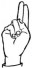 На ћирилици написано БУДИМИР ПЕЦИЋ састоји се из 12 слова [?]. Исписано ћириличном једноручном азбуком за глувонеме: